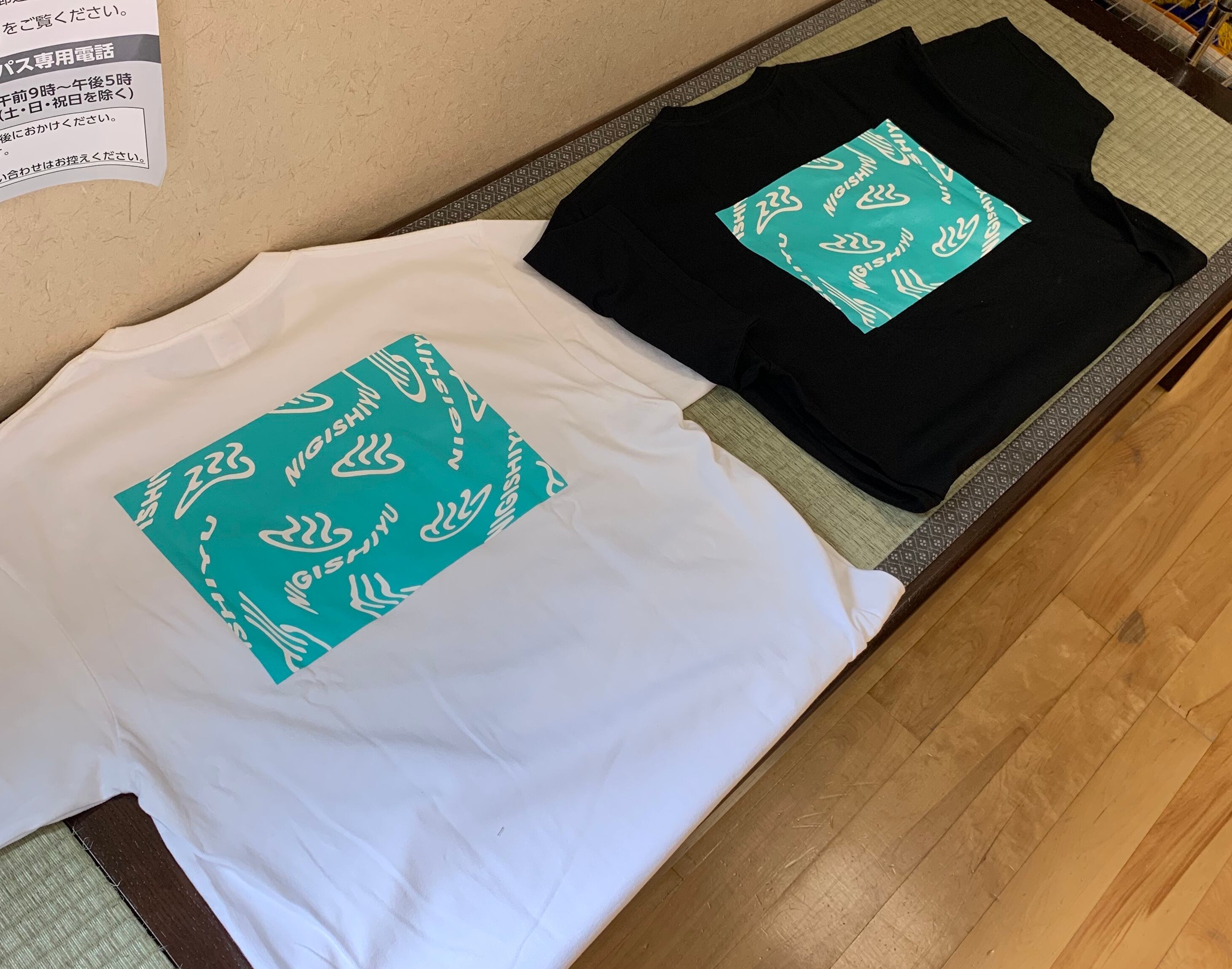 仁岸湯オリジナルTシャツ。通称にぎてぃ〜。